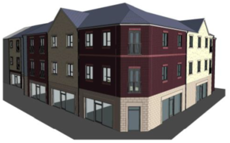 10 fflat 3 ystafell wely ar y lloriau uchaf ac eiddo masnachol ar y llawr gwaelod
